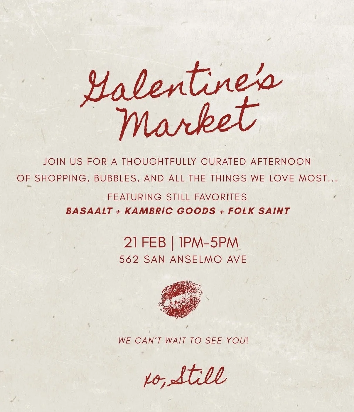 Back to All Events Galentine's Pop-Up at Still Saturday, February 21, 2026 1:00 PM 5:00 PM Google Calendar ICS